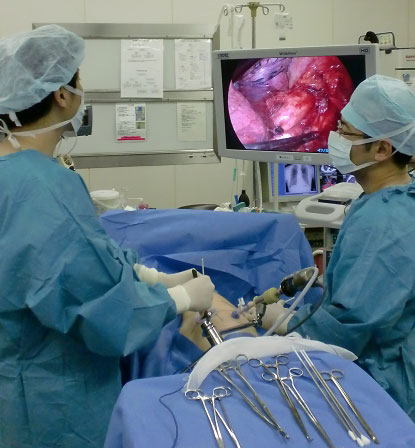 - 胸腔鏡を用いた手術…肺がん・胸腺腫瘍・縦隔腫瘍に対する摘出手術