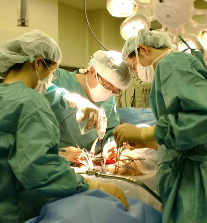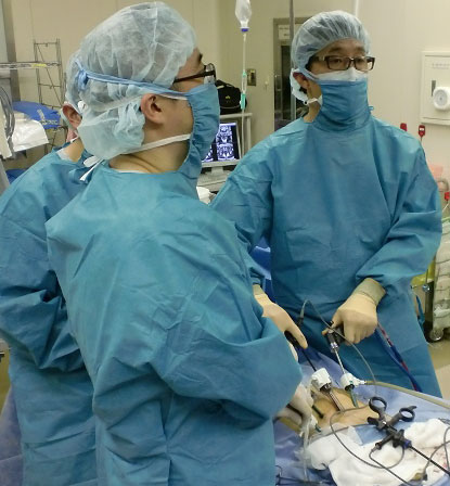 近年、治療技術や手術に用いる各種電子機器、内視鏡、ロボットなどの進歩により手術手技は大きく進歩してきています。われわれは手術の必要な患者さんに最先端の技術を提供するとともに、より安全に、可能なものはより低侵襲に、また逆に拡大手術で根治の目指せるものは各科協力し徹底的な手術を行っています。以下は、私たちが行っている手術の実施例です。